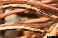| Osip jelovih iglic: apoteciji na odmrlih jelovih iglicah (foto. Jurc Dušan) |